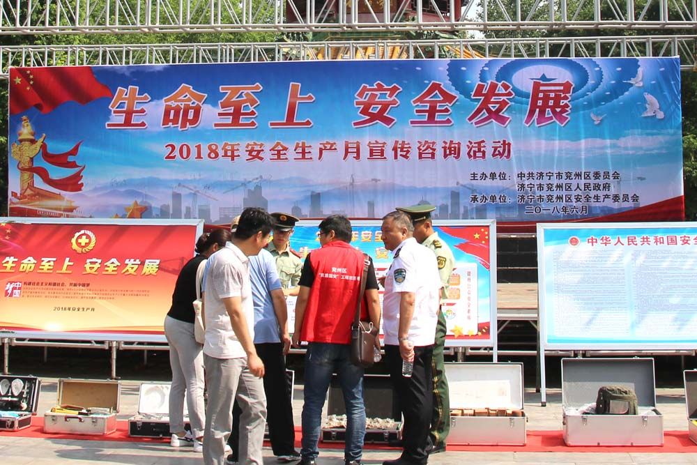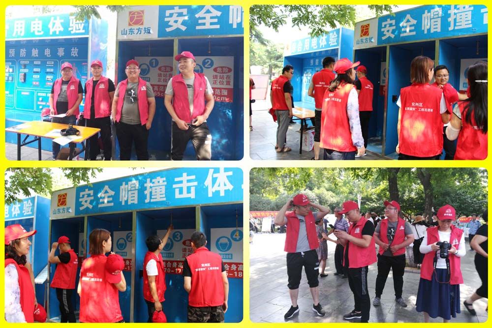 由我方矩公司代表兗州區(qū)住建局、建管處設(shè)置的建筑施工安全生產(chǎn)主場展示區(qū),公司專職安全生產(chǎn)管理員、機電設(shè)備管理員、環(huán)境整治防塵員等關(guān)鍵崗位人員,他們身穿紅馬甲、頭戴小紅帽,人人都是素質(zhì)固安的志愿者,個個都是關(guān)注安全、關(guān)愛健康的護衛(wèi)者,他們知識博深、技藝精湛、演練精準(zhǔn),具有良好的建筑安全技能,社會實踐經(jīng)驗豐富的建筑施工安全生產(chǎn)管理團隊,通過擺放建筑安全生產(chǎn)展示板、講解國家安全生產(chǎn)法律法規(guī)、分送《居家安全使用手冊》、發(fā)放安全生產(chǎn)體驗須知等居家使用、喜聞樂見、豐富多彩的安全生產(chǎn)法律法規(guī)和安全常識,向廣大人民群眾面對面的交流、心貼心的溝通,零距離的解答群眾關(guān)心的安全生產(chǎn)問題,營造了你所關(guān)心的,就是我們關(guān)注的尊重生命、尊重健康的活動氛圍,把安全科普知識和技能演練,成為主場展示區(qū)安全生產(chǎn)文化傳播的大舞臺。